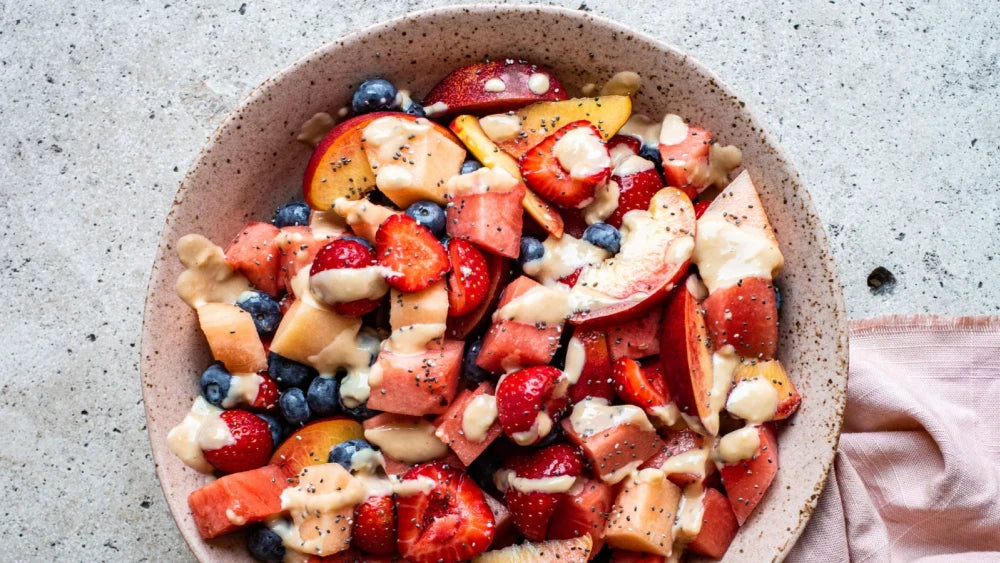 Cremiger Cashewbutter-Obstsalat mit Chia