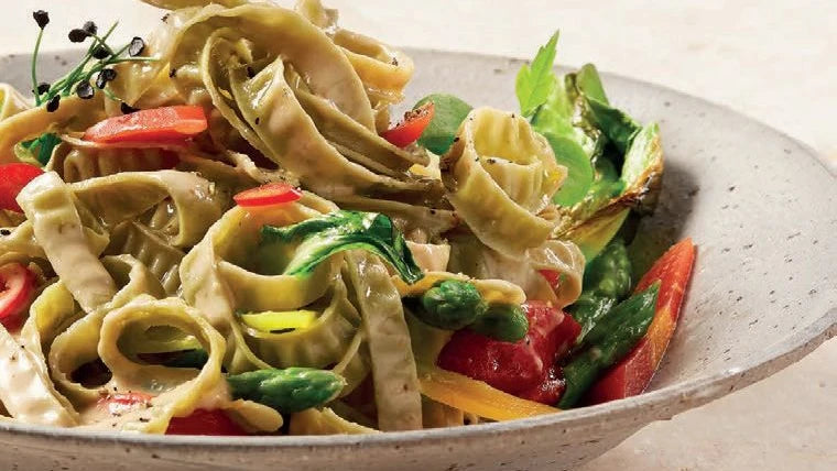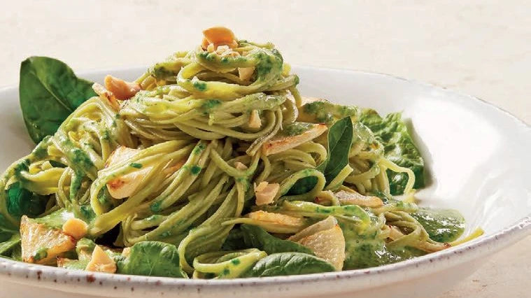 Edamame Spaghetti mit (fast) roher Spinatsauce