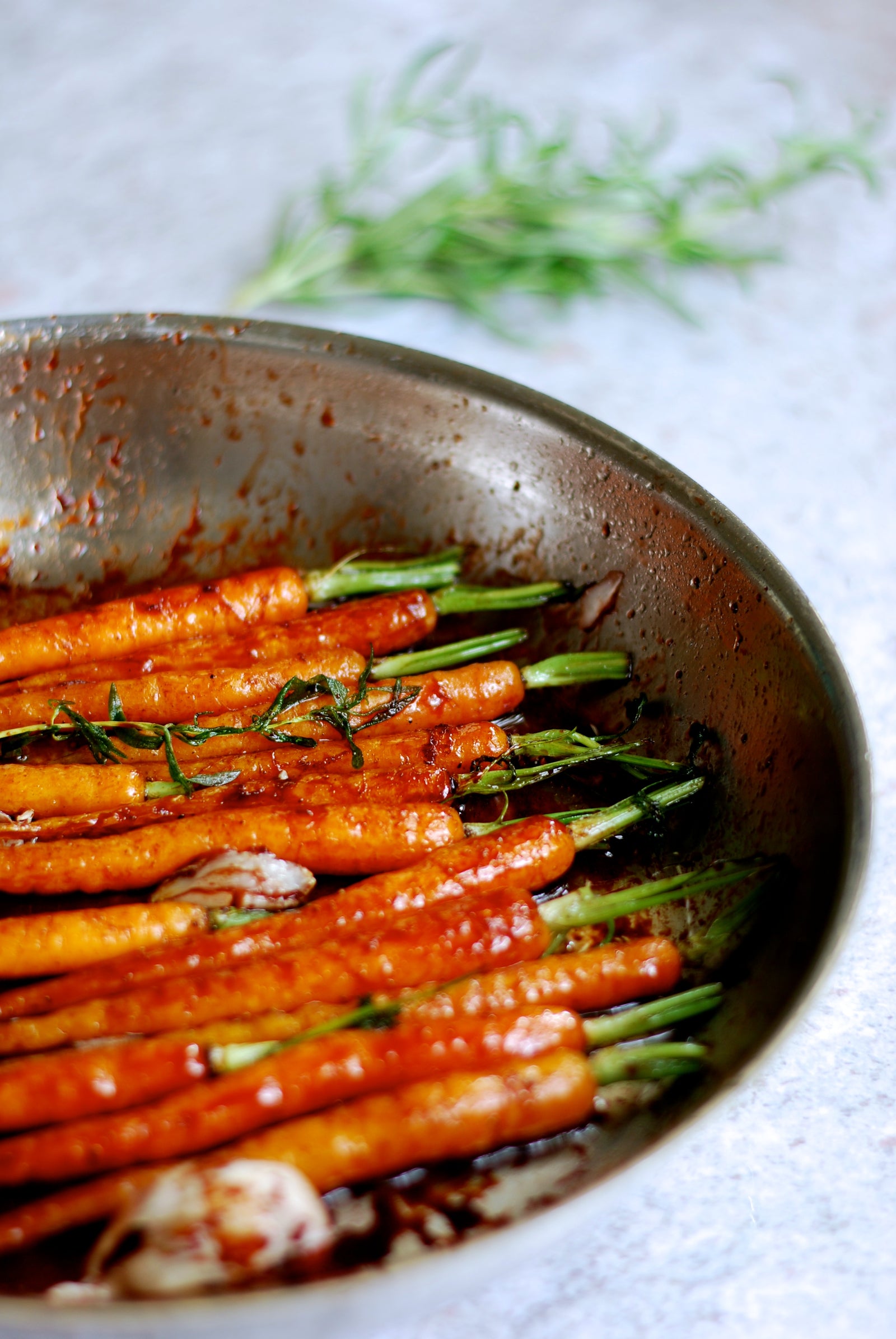 Mit Dattelsirup glasierte Karotten mit Zimt und Rosmarin