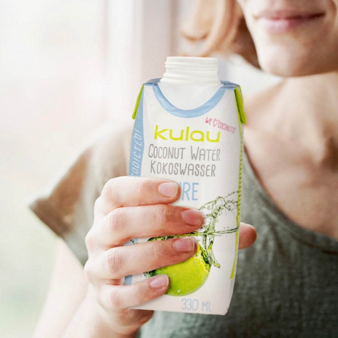 Genießen Sie morgens, mittags oder abends ein gekühltes Glas Kulau Coconut Water, um sich auf köstliche Weise zu rehydrieren.